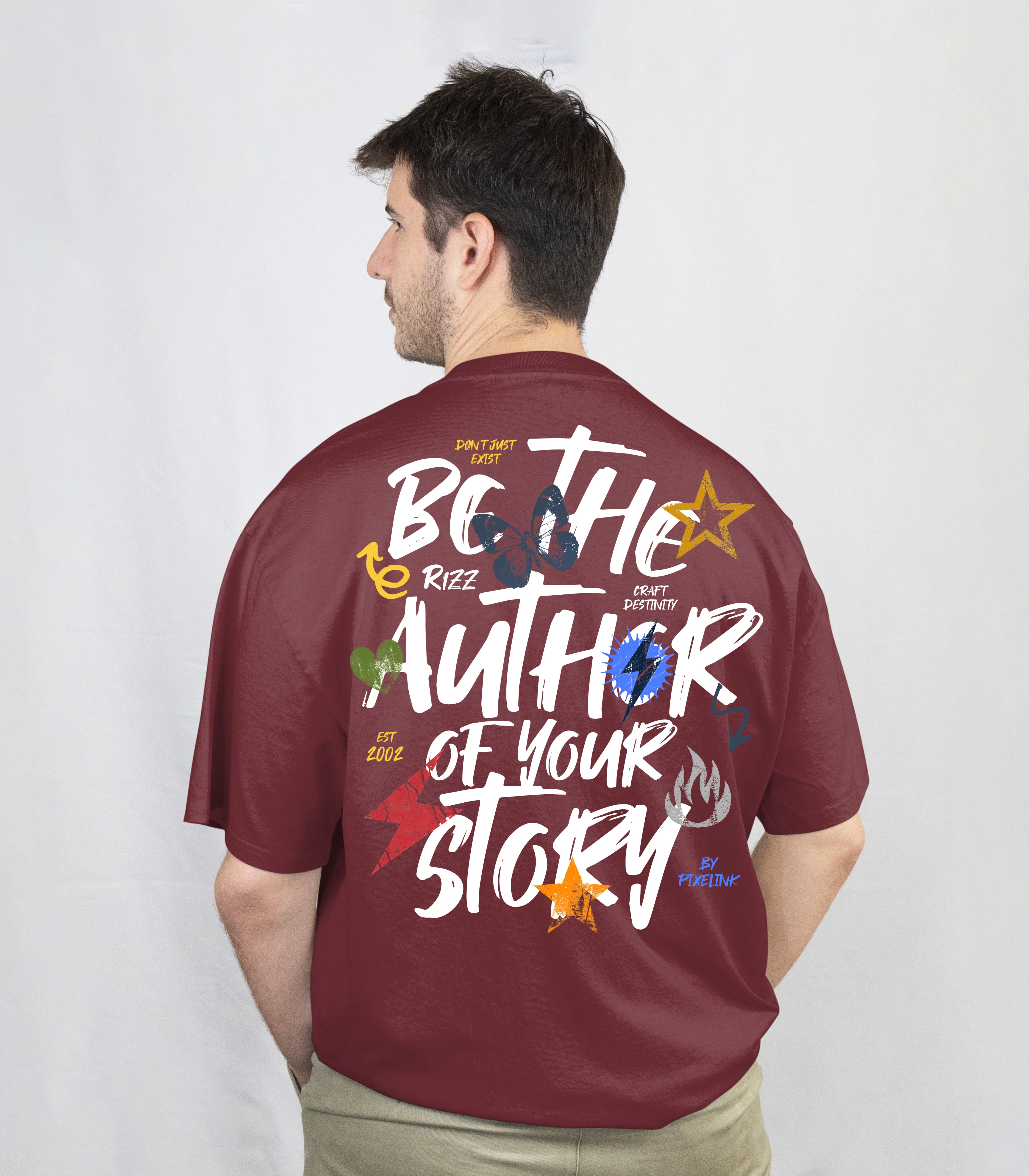Self Made Graphic Oversized T-Shirt – Wine Red for Everyday Wear
